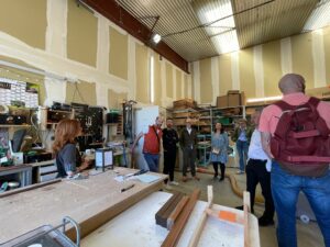 Pour l’atelier de ce mois d’avril 2026, un groupe d’entrepreneurs est venu explorer le quartier des Bassins à flots où, à quelques centaines de mètres l’un de l’autre, sont installés Le Relais Gironde et l’ATELIER D’éco SOLIDAIRE. Le centre de tri du Relais est toujours très interpellant au regard des volumes de textiles traités. Il procure un regard réaliste sur le devenir des vêtements quand on veut s’en débarrasser. La visite de la recyclerie créative en suivant a donné une autre couleur à ce parcours avec moins de volume et plus de créativité sur le secteur du mobilier et de la déco.
